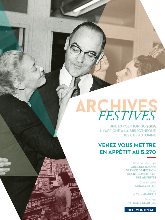Archives Festives est le nom de l’exposition d’HEC Montréal qui se déroulait à l’automne 2015. La demande était d’imaginer une vitrine teasing de l’exposition et son affiche. Notre idée était de rendre le monde des archives attractif en l’associant à une identité visuelle festive. Travail en collaboration avec Justine Bousquié.