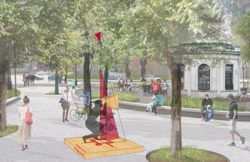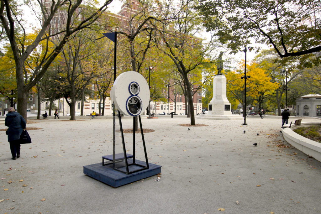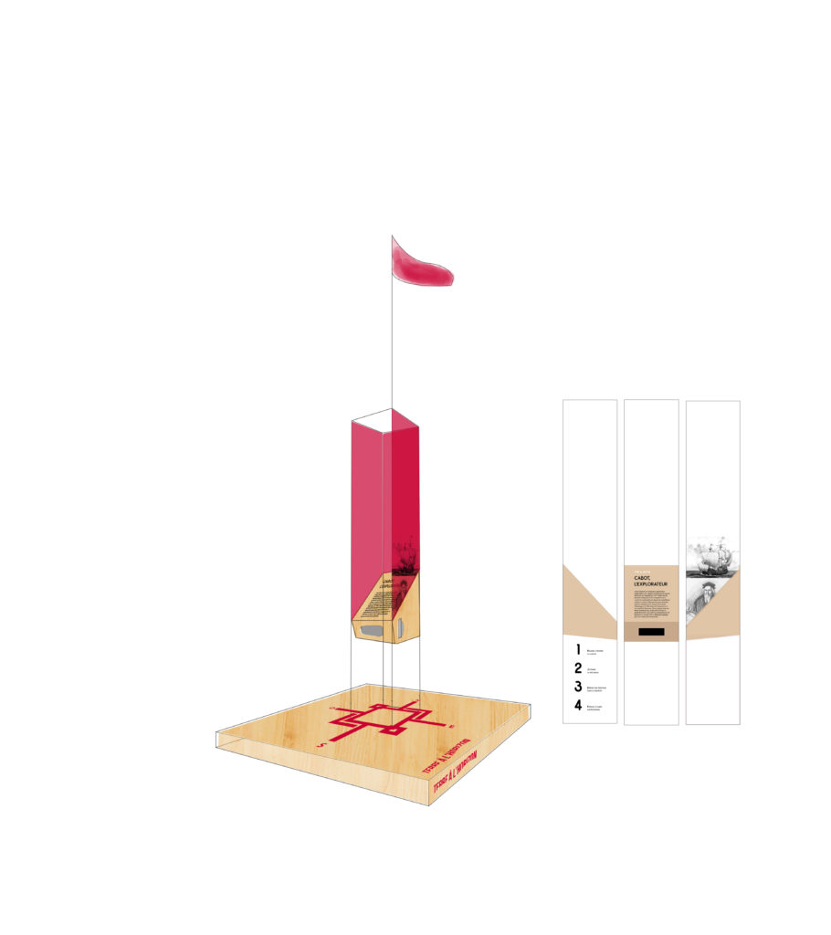 Dans le cadre du réaménagement du square Cabot à Montréal, nous avons imaginé des machines à regarder dans le temps. Quatre visionneuses, inspirées des viewmaster ont été installées dans le parc rappelant l’univers de la navigation . Chacune d’elle raconte une histoire différente sur le parc en se superposant à la réalité. Les dessins du projet ont évolué face aux contraintes techniques qu'imposait le système optique.